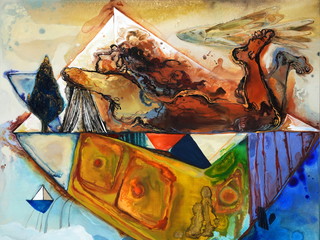 I express the birth, spread, expansion and connection of thoughts which has so dynamic colors and shapes,through mainly ink with mixed materials.